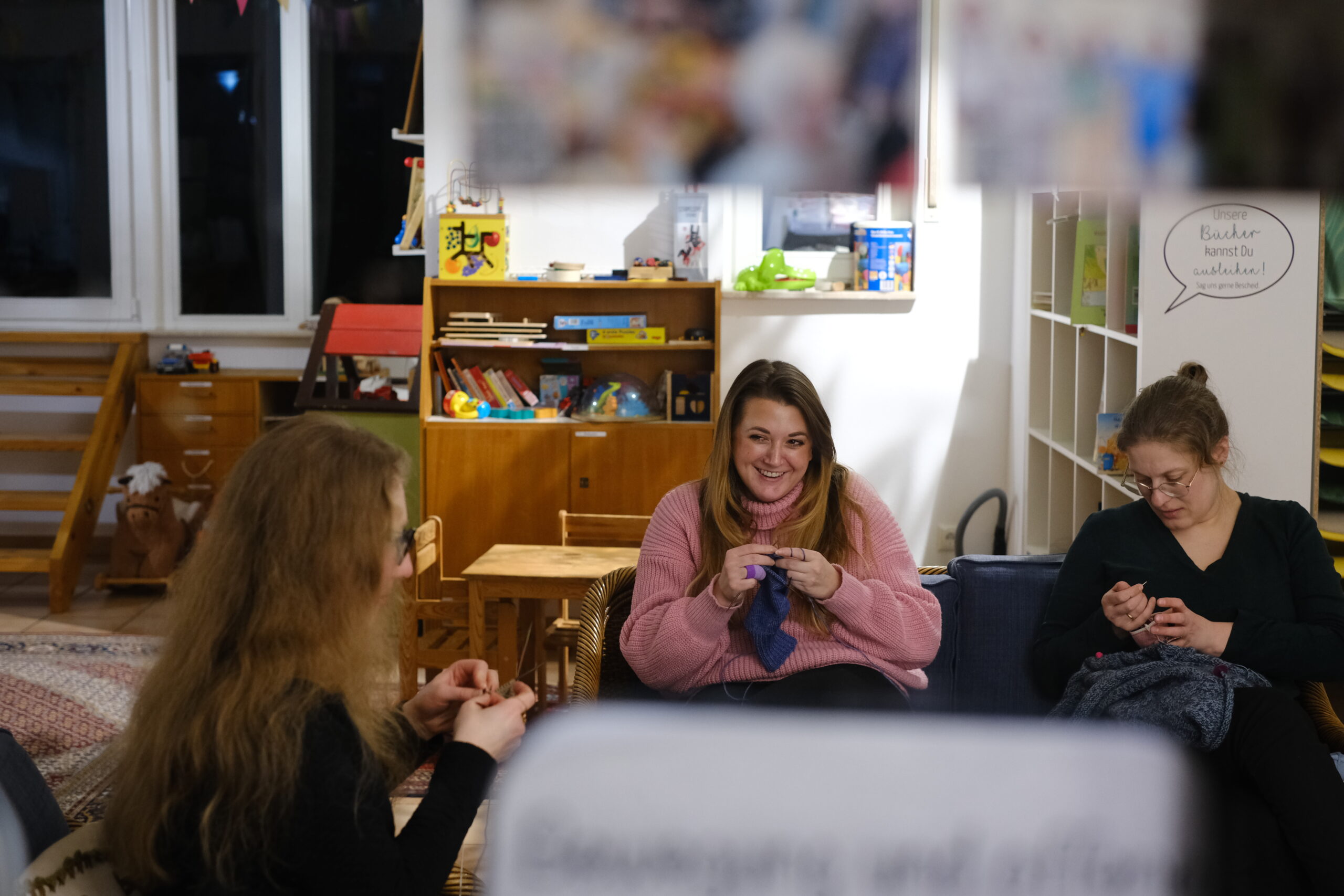 Vor Ort ist Marlene Nüchter. Sie strickt gerne in Gesellschaft und freut sich darauf dich begrüßen zu dürfen. Hier lernt Jede(r) von Jedem. Wir freuen uns auf dich!